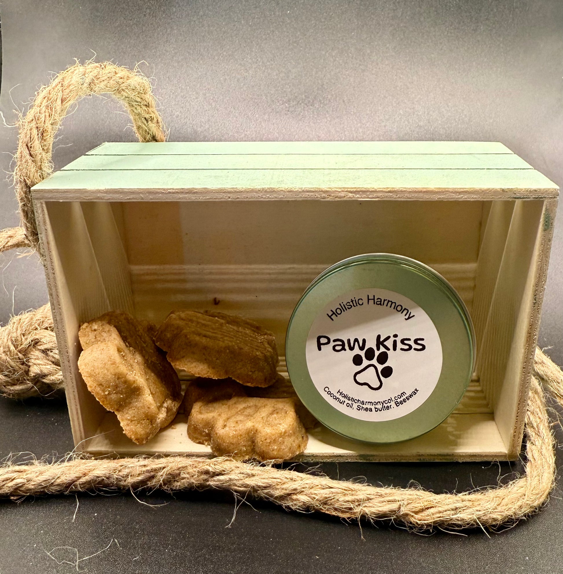 Give your pup the care they deserve with our Paw Kiss, specially crafted to nourish, protect, and heal dry, cracked paws. Made with a gentle blend of coconut oil, shea butter, beeswax, and apricot oil, this balm provides deep hydration and a natural barrier against harsh elements like hot pavement, ice, and rough terrain.